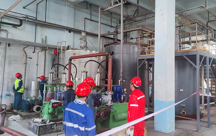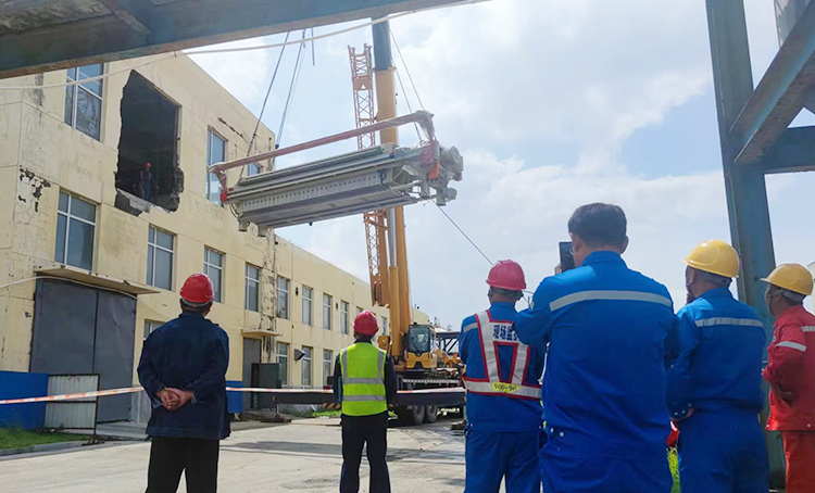 該項目安裝施工環境為原有舊廠房,環境比較複(fù)雜,安裝前期我司技術負責王工提前兩周到達吉林石化公司,考察現場施工環境,對接施工方案,核實施工細節,為設備順利安裝奠定了(le)基礎。